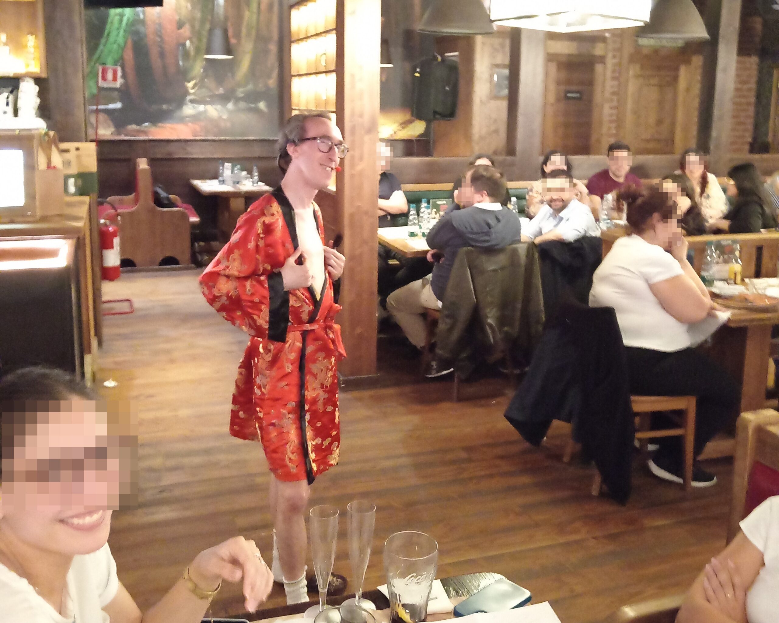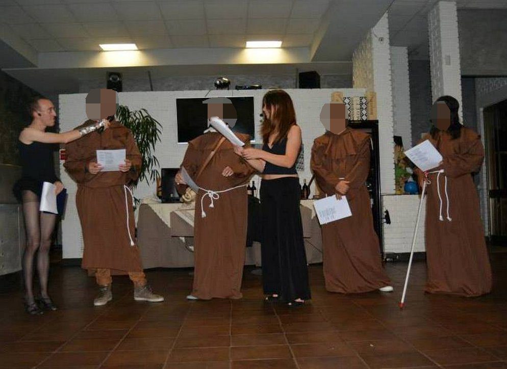 Chi ha scelto di entrare nel gioco ha ricevuto direttamente sul posto abiti da frate e da suora, forniti dagli organizzatori. Il travestimento ha scatenato le risate di tutte e creato l’occasione per scattare una valanga di foto divertenti. L’atmosfera era unica: una mescolanza di giallo, comicità e teatro improvvisato.