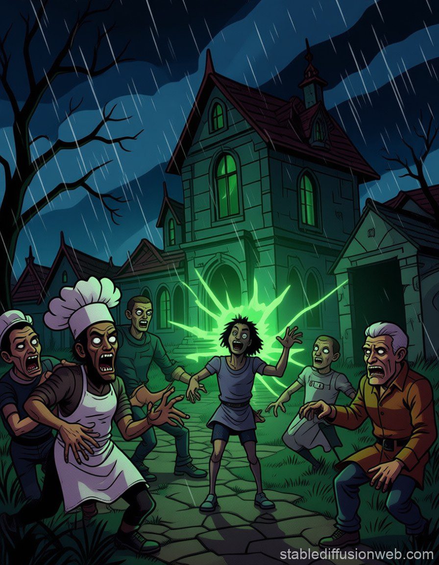 L’elisir ha trasformato i corpi in un’orda di zombi bizzarri, ognuno con la personalità della sua ultima emozione in vita! Richiamati telepaticamente dal Monster Zombi, si radunano intorno alla villa!