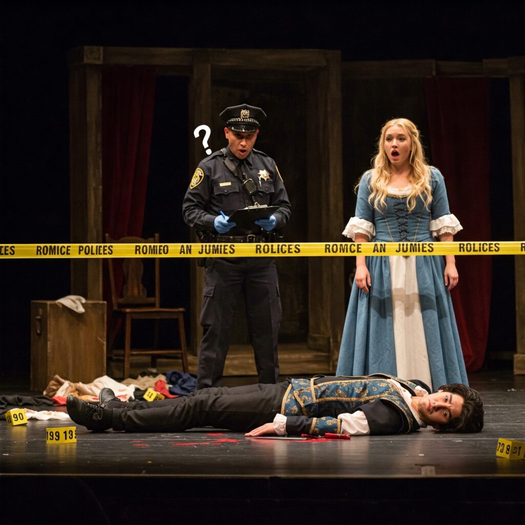 Il misterioso omicidio costringe l’intera produzione a fermarsi. Il protagonista dello spettacolo, l’attore che interpreta Romeo, decide di farsi carico delle indagini per rendere giustizia alla vittima e scoprire l’identità dell’assassino.